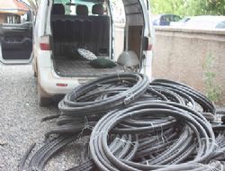 Araçlarda yapılan aramada hırsızlık malı metrelerce uzunluğunda bakır kablo ele geçirildi.