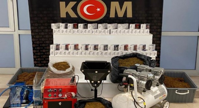 Muş Valiliğinden yapılan açıklamada, Emniyet Müdürlüğü Kaçakçılık ve Organize Suçlarla Mücadele Şube Müdürlüğü ekiplerince yürütülen çalışmaların devam ettiği belirtildi. Açıklamada, “Yapılan çalışmalarda sigara üretim ve paketleme imalathanesi olduğu değerlendirilen bir ikamet ve eklentisine operasyon düzenlendi. Operasyon kapsamında; 1 adet makaron doldurma makinesi, 1 adet havalı komprasör, 25 kilogram kıyılmış tütün ve 14 bin 400 dal boş makaron ele geçirilmiştir. Konu ile ilgili olarak 1 şüpheli şahıs hakkında 5607 S.K.M suçundan adli tahkikata başlanılmıştır” denildi.