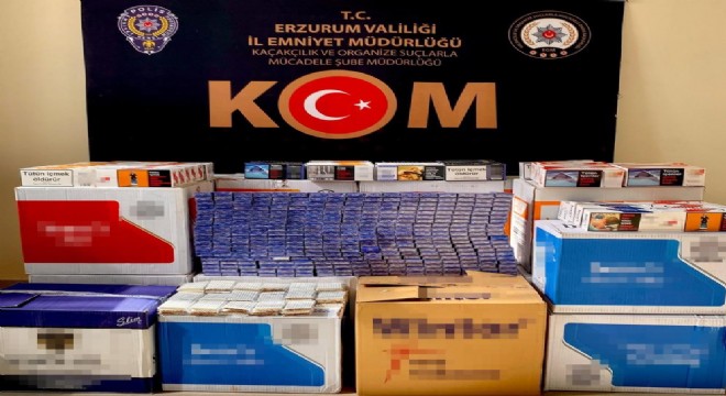 Erzurum Emniyet Müdürlüğü Kaçakçılık ve Organize Suçlarla Mücadele Şube Müdürlüğü ekipleri tarafından yapılan operasyonda kaçak sigara yakalandı.