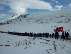 Erzurum’un Yakutiye Belediyesi üstündeki rölyef önünde temsili yürüyüş yapan izciler, daha sonra şehir turu atarak Erzurum’a 200 kilometre uzaklıktaki Enver Paşa’nın hareket merkezi olan Bardız’a gitti.