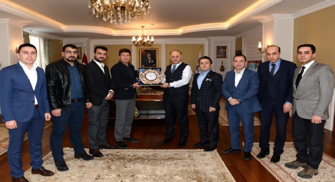 TÜGVA Erzurum İl Temsilcisi Mustafa Kahveci ile birlikte Teşkilat Koordinatörü Emre Kuşkapan, Tanıtım Medya Koordinatörü Emre koç, Eğitim Koordinatörü Lütfü İhsan Ünlü, Lise Koordinatörü Murat Güler, Orta Okul Koordinatörü Mahmut Zarsat, Mali İşler Koordinatörü İbrahim Ovat ve Sekreter Hüseyin Yavuz, Vali Azizoğlu’nu makamında ziyaret ederek TÜGVA'nın ülke genelinde ve ilimizde yaptıkları faaliyetler hakkında bilgi verdi.