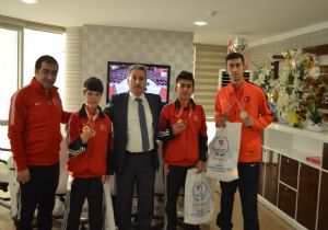 Oldukça neşeli geçen ziyarette Ahmet Çelebi ve sporcuları kutlayan Taşkesenligil, Avrupa ve Balkanların fatihi karatecileri ödüllendirdi.