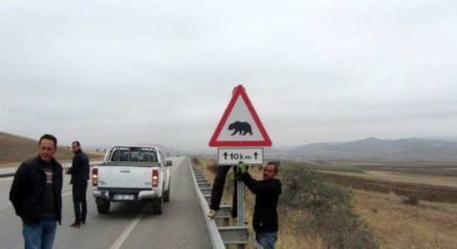 Karayolu’na “boz ayı” uyarı tabelaları konuldu