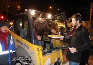 Erzurum’da, etkili olan kar yağışının ardından aralıksız olarak kapanan köy yollarını açmak için çalışan karla mücadele ekipleri gece gündüz çalışmalarına devam ediyor. Gece eksi 20 derece soğuk havada kar temizlemesi yapan kar timlerine Büyükşehir Belediyesi tarafından tatlı ikram edildi. Fen İşleri Dairesi Başkanı Zafer Aynalı, gece gündüz demeden aralıksız fedakarca çalışan karla mücadele ekiplerine, tatlı ikram ederek soğuk hava ekiplerinin içini ısıttı.