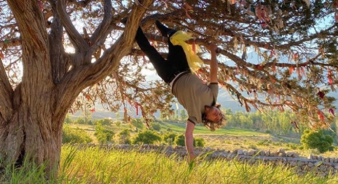 Erzincan Binali Yıldırım Üniversitesi Güzel Sanatlar Fakültesi Dekanı sanatçı ve akademisyen Mehmet Kavukcu; daha önce “şiddet, terör, ölüm, sonsuzluk, Covid-19, mülteci, orman yangınları, atık, israf, iklim, doğa” gibi konular ve toplumsal problemler üzerine, ulusal ve uluslararası alanda, yerleştirmeler ve performanslar gerçekleştirmiştir. Sanatçı; bu kez Çoruh’un büyüleyici manzarasında, adeta insanı sarıp sarmalayan doğanın dokusunun ve kültürünün bir dili olarak Baksı Müzesi’nde yer alan Ütopya Atölyeleri çerçevesinde Mehmet Kavukcu atölyesinde yer alan öğrencilerin de katılımıyla performans ve enstalasyonlar geçekleştirdi. Aynı zamanda, Baksı doğası üzerinden yüzyılların geleneğini yaşatan dilek (huykesen) ağacında bireysel olarak yeni bir performans sergiledi. Dilek ağacı, Bayburt’ta Baksı Müzesini ve köyü belli bir mesafeden izleyen doğada, insanların ümitlerini ve dileklerini yaşatan yönüyle sanatçının ilgi alanında yerini aldı. Doğanın koruyucu ve yaşamın vazgeçilmez bir unsuru olması, inanç ve geleneklerin de doğa üzerinden temellenmesini sağlayarak doğanın en etkileyici canlılarından biri olan ağaçta sembolik ve kültürel olarak çeşitli anlamlara sahip olmasından dolayı, ağacın türeyiş beslenme, Allah ile kurulan bağlantı, cennete ulaşma, şifa ve dilek gibi anlamlar ve roller üstlenmesi, dilek ağacının ortaya çıkmasını sağladı. Doğada tek başına yetişen bir ağaca bağlanan çaputla dileklerin kabul olduğuna inanılması ve onun üzerinden umut oluşturulması, sadece bizim toplumumuzda değil, dünyada da birçok toplumda geleneksel bir dil olarak yerini alıyor. Yüzyıllara dayanan bu gelenek, evrensel yönüyle varlığını sürdürüyor. Bağlanan çaputların insanların dileğini temsil ettiği, bir anlamda da insanların kendisi olduğu gerçeğiyle hareket eden sanatçı, bir dilek tutarak çaput yerine kendisini ağaca bağlayarak bu gerçeğe vurgu yaptı. Çaputların rüzgârın etkisiyle salınmasına benzer şekilde bir davranış sergilemesi metaforik bir algı taşıyor. Sanatçının baş aşağı olacak şekilde olması, eleştirel yönüyle bu duruma işaret de ediyor.