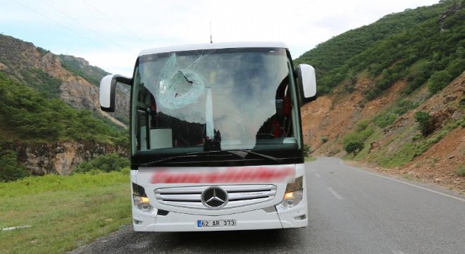 Olay, Tunceli-Erzincan karayolunun 30. kilometresinde Zağge mevkisinde meydana geldi. Edinilen bilgiye göre, Tunceli'den Trabzon’a gitmek için yola çıkan Mustafa Durmuş idaresindeki 62 AR 373 plakalı yolcu otobüsüne, dağlık alandan kopan kaya parçası isabet etti. Kaya parçası ön camdan girip yan camdan çıkarken, yardımcı kaptan Ekrem Yıldırım hafif yaralandı. Yaralı ambulansla devlet hastanesine kaldırıldı.