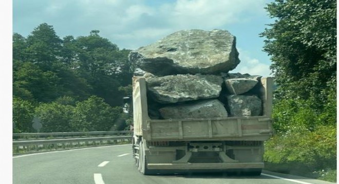 Kaya yüklü kamyonlar trafikte endişe doğuruyor