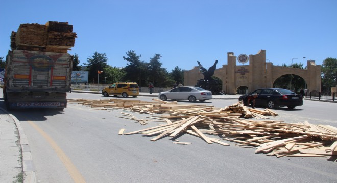 Şehrin göbeğinde bulunan kavşakta oluşan kazada yolun bir şeridini kaplayan keresteler trafiği felç etti. Keresteler ekipler tarafından kaldırıldıktan sonra trafik normal akışına döndü.