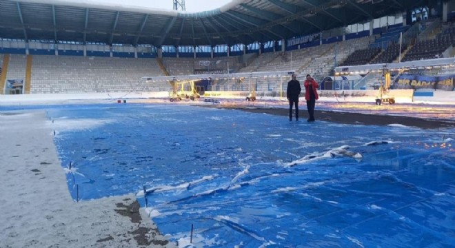 Kış şartlarının ağır hüküm sürdüğü Erzurum’da kar ve soğuktan en fazla olumsuz etkilenen yerlerden biri de Kazım Karabekir Stadı’nın zemini. Stat personeli zemini Erzurum-Iğdır maçına hazır hale getirmek için seferber oldu