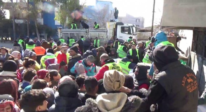 Erzurum İspir Belediyesi ve MHP İl Başkanlığınca depremzedeler için hazırlanan 20 tır dolusu gıda, su ve ısıtıcılar, Hatay Kırıkhan’da vatandaşlara dağıtıldı.