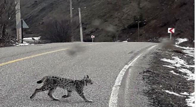 Nesli tükenme tehlikesi altında olduğu kırmızı listede koruma altında bulunan vaşak, bu kez Erzincan – Tunceli karayolunda görüntülendi.