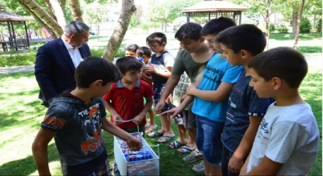Kırşehir Valisi Hüdayar Mete Buhara, sıcakların etkili olduğu şehirde parkta oynayan çocuklara dondurma ikramında bulundu.