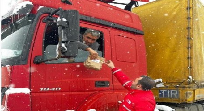 Türk Kızılay Erzurum Afet Müdahale Ekiplerince yoğun kar yağışı ve buzlanma nedeniyle yolda bekletilen araçlardaki vatandaşlara sıcak içecek ve yiyecek ikramında bunuldu.
