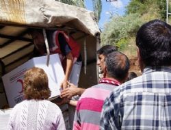 Kızılay selden zarar gören ailelere çadır ve battaniye yardımında bulundu