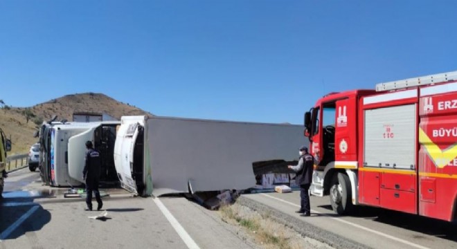 Aşkale ilçesinde şoförün direksiyon hakimiyetini kaybetmesi sonucu kontrolden çıkan tır yan yattı. Kazada şoför hafif yaralandı.