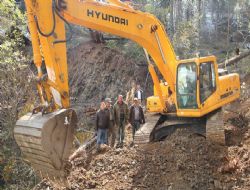 Yol yapım çalışmasının aralıksız devam ettiğini belirten Orman İşletme Şefi Korkmaz Dursun, yol yapım çalışmalarını yerinde izledi.
