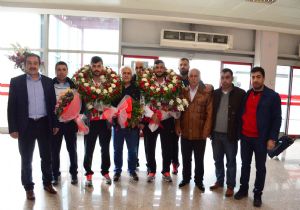 Güreşin Avrupa Fatihleri, Erzurum’da coşku ile karşılandı. Sabah erken saatlerde havalimanında toplanan güreş camiası Avrupa Şampiyonu Muhammet Nuri Kotanoğlu ve Avrupa üçüncüsü Kadir Yazıcı’yı bağrına bastı. Minderde tarih yazan Dadaş güreşçiler Erzurum’da muhteşem bir şekilde karşılanmanın gururunu yaşadı. Bulgaristan’da yapılan U23 Serbest Güreş Avrupa Şampiyonası’nda Avrupa şampiyonu olan 74 kilodaki Erzurumlu güreşçi Muhammet Nuri Kotanoğlu ve üçüncü olan 86 kilodaki Kadir Yazıcı, havalimanında davul zurna eşliğinde çiçeklerle karşılandı. Omuzlara alınan güreşçiler, konvoy halinde şehir turu attı. Erzurum Gençlik Hizmetleri ve Spor İl Müdürlüğü İdari İşler Şube Müdürü Bülent Tilkidöğen, TFF Bölge Müdürü Metin Codur, MHP İl Başkanı Bülent Yazıcı, Bayburt Üniversitesi Öğretim Görevlisi İzzet Uçan, GHSİM Spor Şefi Yunus Aras, 50.Yıl Ortaokulu Müdürü Selami Topaloğlu, Pasinler Güreş Temsilcisi Aslan Sertoğlu, Antrenörler İlhami Topaloğlu, Yaşar Sifil, Uluslararası güreş hakemlerinden Sebahattin Yıldız, Harun Çiftçi, A. Celil Köseoğlu, Battal Alpkılıç, Dursun Kurtoğlu Erzurum Spor Lisesi öğretmenleri, öğrenciler ve çok sayıda güreş sever karşıladı. Sporcular havalimanındaki karşılamanın ardından, konvoy eşliğinde şehir turu attı.