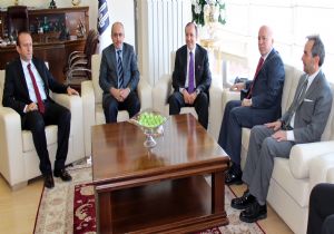 ERZURUM (İHA) - AK Parti Erzurum Büyükşehir Belediyesi Başkan Adayı Mehmet Sekmen, Büyükşehir Belediye Başkanı Av. Ahmet Küçükler `i makamında ziyaret etti. Ziyarette AK Parti Erzurum İl Başkanlığı yönetim kurulu üyeleri de hazır bulundu. Samimi bir atmosferde geçen ziyarette siyaset konuşuldu. Küçükler, ziyarete ilişkin yaptığı değerlendirmede, şu görüşlere yer verdi: "Başkan adayımız Mehmet Sekmen Beyefendi bizleri ziyaret etti. Kendisine teşekkür ediyor, çalışmalarında başarılar diliyorum. Millete hizmet yolunda gönüllerde ve yüreklerde yer edinmiş AK Parti'mizde bizlere emanet edilen makamların hakkını verebilmek için gece gündüz demeden canla başla çalıştık. Partim, milletim ve halkımın alnına leke düşürecek hiçbir faaliyetin içinde olmadık. Hamd olsun, alnımızın akıyla bu görevimizi yürüttük. Siyaset bir hizmet ve bayrak yarışıdır. AK Parti`mizden Başkan Adayı olan Mehmet Sekmen Beyefendi`nin bu yarışı kazanacağına ve şehrimize önemli hizmetler yapacağına olan inancım tamdır. Kendisine başarılar diliyor, Mart 2014`te yapılacak olan mahalli idareler seçimlerinden zaferle ayrılması için Cenab-ı Allah`a dua ediyorum." Daha sonra basına kapalı olarak gerçekleşen ve bir saat süren ziyarette Başkan Küçükler, Sekmen`e, belediyenin yürüttüğü hizmetler ve projeler hakkında bilgi verdi.