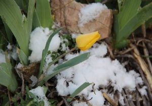 Perşembe günü gece yarısından itibaren etkili olan kar yağışı Oltu’da Lale Dağı'nda doğal olarak yetişen sarı ve kırmızı laleleri ve geven çiçeklerini kar altında bıraktı.