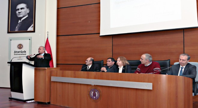 Atatürk Üniversitesi Kültür Merkezi Mavi Salonda düzenlenen toplantıya Rektör Prof. Dr. Ömer Çomaklı, rektör yardımcıları, fakülte dekanları, birim yöneticileri ve akademisyenler katıldı.