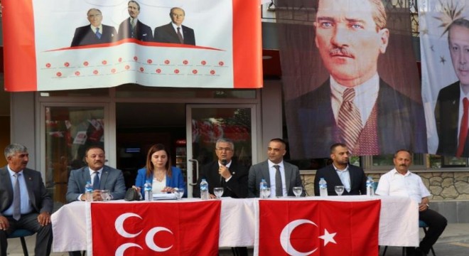 Ardından konuşma yapan Erzurum MHP İl Başkanı Naim Karataş da, “Allah’ımıza şükürler olsun nerede bir üç hilal varsa, bir sancak varsa milyonlarca sevdalıları, gönüldaşları hep birlikte bu üç hilalimizin sancağımızın altına toplanıyor. Milliyetçi Harekat Partisi başta liderimiz olmak üzere biz onun dava arkadaşı, yol arkadaşı olarak her zaman devlet dedik, millet dedik, bayrak dedik, ezan dedik. Karşılıksız bu ülkeyi seviyoruz” dedi.