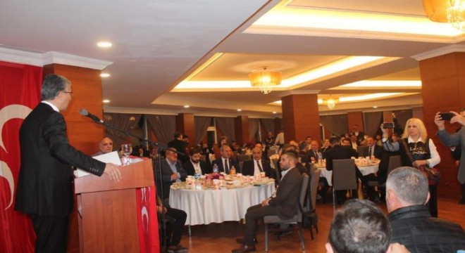 İftar buluşmasına ev sahipliği yapan MHP Erzurum İl Başkanı Naim Karataş, yaptığı konuşmada birlik ve beraberlik mesajları verdi. Karataş, “Gönlünü üç hilale kaptırmış olan ancak ve ancak ülkülerinin peşinden koşar. Dolayısıyla bizim davamızda ikbal derdi olmaz, istikbal derdi olur. Bizim işimiz hakikatledir, yalanla işimiz olmaz. Biz halkın yanında olduk, hakkın yanında olduk, hakkaniyetin yanında olduk, helalin safını tuttuk. Dün ne idiysek, bugün ve yarın da aynı olacağız. Aziz milletimizin derdiyle dertlenmeye, sadece milletimizin selameti için mücadele etmeye ve bu aziz vatanın namını da, şanını da yüceltmek için var gücümüzle çalışmaya devam edeceğiz” diye konuştu.