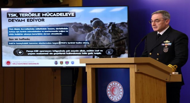1 PKK’lı teröristin daha teslim olduğunu bildiren Tuğamiral Aktürk, "Pençe-Kilit operasyon bölgesinde tespit edilen teröristlere ait mağaralarda çok sayıda silah, mühimmat ve yaşam malzemesi ele geçirilerek kullanılamaz hâle getirilmiştir" şeklinde konuştu.