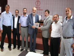 Ziyaretin anısına Güvenli, Şahin’e plaket verdi.