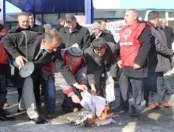 Daha sonra sendika üyeleri maaş bordolarını yakarak ısındılar. Sendika üyeleri, “Hava çok soğuk maaş bodroları ancak ısınmaya yarıyor. Yakıp ısınıyoruz” dediler.