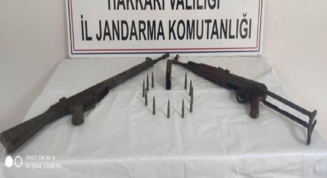 Hakkari'nin Yüksekova ilçesi kırsalında bölücü terör örgütü mensuplarına ait olduğu değerlendirilen mağara ve sığınakta silah ele geçirildi.