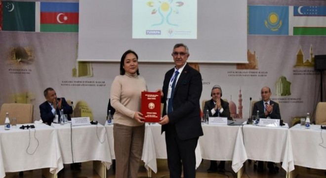 Alpaslan Ceylan’a ödülü KTMÜ Rektörlük Konferans Salonu’nda TÜRKPA-KTMÜ iş birliğiyle düzenlenen "Türk Dünyasının Dünü, Bugünü ve Geleceği" konulu Sempozyum sırasında Kırgız Cumhuriyeti Parlamentosu Başkan Yardımcısı Aida Kasımaliyeva tarafından takdim edildi.