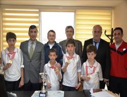 (Erzurum-GHSİM)Erzurumlu Masa Tenisçilerde şampiyonluk sevinci yaşanıyor. Ağrı’da yapılan Okullarası Masa Tenisi Grup Şampiyonası’nda Erzurum Sabancı Orta Okulu Erkek Masa Tenisi Takımı birinci olurken, Pasinler Tepecik Orta Okulu Bayan Masa Tenisi takımı da üçüncü oldu. İki okulda Mayıs ayında Malatya’da yapılacak olan Türkiye Finallerine katılmaya hak kazandı. Masa Tenisi Erkeklerde Erzurum’a Orta Okullarda Grup Birinciliği Kupası ve şampiyonluk madalyalarını getiren Masa Tenisçiler, Erzurum Gençlik Hizmetleri ve Spor İl Müdürlüğü’nü ziyaret etti. Ziyarete Masa Tenisi Antrenörü Mahmut Çağlayan ve Sabancı Orta Okulu Beden Eğitimi Öğretmeni Serkan Cantürk de katıldı. Erzurum GHSİM Mali İşler Şube Müdürü Memduh Ceyhan, Satın Alma Şube Müdürü Murteza Cengiz ile Personel Müdürü Selami Kızılkaya, şampiyon masa tenisçileri tebrik ederek, başarısından dolayı kutladı. Ziyarette sporculara çeşitli hediyeler verildi. Erzurum GHSİM Mali İşler Şube Müdürü Memduh Ceyhan, Malatya’da yapılacak olan Türkiye Finalleri öncesinde şampiyon masa tenisçilere başarı dileğinde bulunarak kendilerinden Türkiye şampiyonluğu beklediklerini söyledi.