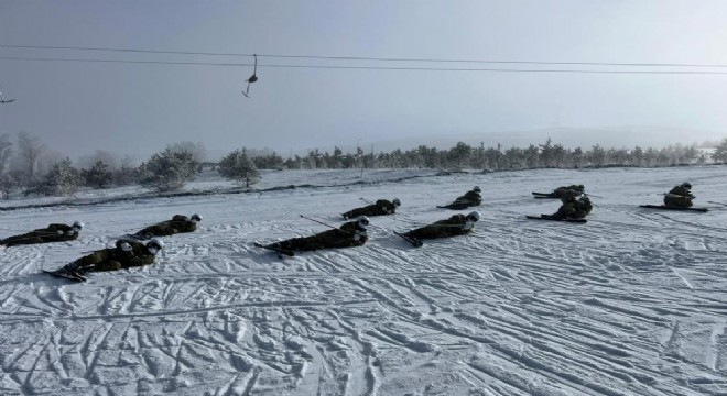 Mehmetçik Erzurum’un soğuk ve karlı dağlarında kış tatbikatı için hazırlıklarını sürdürüyor, kayak eğitimi aldı.