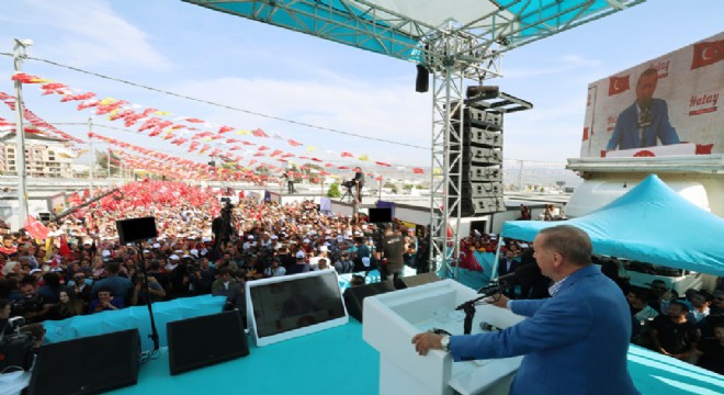 Cumhurbaşkanı Erdoğan, Hatay ziyaretinde yaptığı konuşmada, “Ayıranlardan, ayrıştıranlardan değil, hep birleştirenlerden, 85 milyonun tamamını kucaklaştıranlardan olduk. Nefretin, kinin ve öfkenin diliyle değil, daima kardeşliğin diliyle konuştuk” dedi.