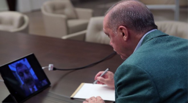 Cumhurbaşkanı Recep Tayyip Erdoğan, Cumhurbaşkanı Yardımcısı Fuat Oktay ve ilgili bakanlarla korona virüs konusunda atılan adımlar ve sonuçları ile ilgili son gelişmeleri ele aldı. Cumhurbaşkanı Yardımcısı Fuat Oktay ile yaptığı görüntülü görüşmede, ürünleri değişik kanallarla yurt dışına kaçıranlara bu işin hesabını soracaklarını vurgulayan Erdoğan, “Ve biz tabii burada bir şeyi daha ülkemizin içinde de bu ürünleri fahiş fiyatlarla satanlara da bu işin hesabını kesinlikle sorarız. Bunun da bizim yasalarımızda yeri yok. Turizmde 14 günde geri ödeme konusu bunları şu anda Hazine Maliye Bakanımız da Kültür ve Turizm Bakanımız ile sürekli görüşme halindeler. Enerji de ise günlük ödemelerin ertelenmesi hususunda bu konuyu masaya yatırmanızda da fayda olur. Bunlar düşünülebilir, erteleme konumuz olabilir ama doğal gaz ve elektriğin kapanması gibi bir şeyin içerisine takdir edersiniz ki biz çok daha zor günler yaşadık, böyle bir şeye girmedik. Çünkü devlet sosyal devlettir. Sosyal devlette de böyle bir adım atılamaz. Bu konuda kararlı olacağız” ifadelerini kullandı.