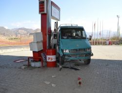 Minibüs akaryakıt istasyonuna girdi