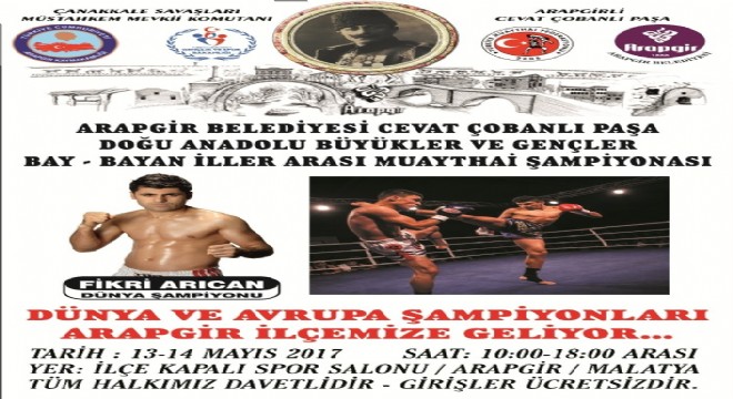 Malatya Arapgir’de 13-14 Mayıs tarihlerinde “Cevat Çobanlı Paşa Doğu Anadolu Büyükler ve Gençler Bay ve Bayan İller Arası MuayThai Şampiyonası” düzenlenecek.