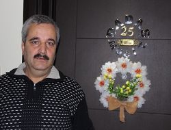 Yuvarlak halka içerisinde “25 Dadaş Mucit” ve Ebubekir Taşbaşı olarak yazılan kapı tabelası altındaki çiçek demetiyle de dikkat çekiyor.