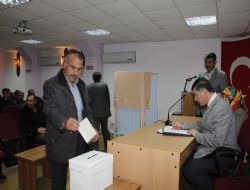 İlçe Kaymakamlığı Toplum Merkezi’nde yapılan seçimde saygı duruşu ve istiklal marşının okunmasının ardından seçime geçildi.