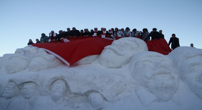 Kardan şehit heykelleri, Kafkas Üniversitesi ile Atatürk Atatürk Üniversitesinden oluşturulan 9 kişilik öğretim görevlisi tarafından, Cıbıltepe Kayak Merkezi’nde 100 metrekarelik alana, 100 kamyon kar taşınarak yapıldı.