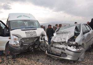 MUŞ (İHA) - Muş’ta minibüsle otomobilin çarpışması sonucu 9 kişi yaralandı.