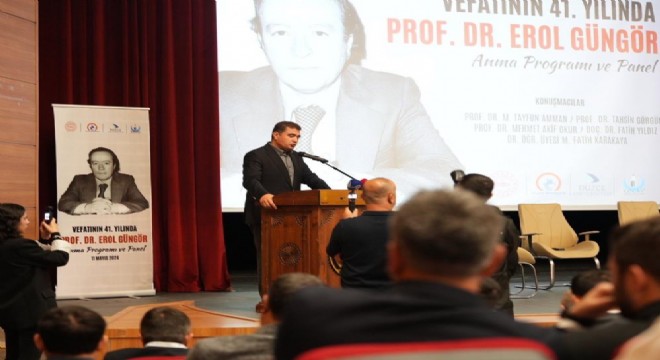 Türk fikir, kültür ve irfan hayatının ‘altın beyinli adamı’ yakın tarihimizin en büyük mütefekkir ve münevveri Prof. Dr. Erol Güngör, vefatının 41. yılında Düzce’de anıldı. Güngör’ün adını taşıyan Kültür Merkezi’nde düzenlenen anma töreni ve panelde, Türkiye’nin önde gelen fikir insanları, Erol Güngör’ün düşüncelerini ve ilmi yönünü, eserleriyle birlikte ele alarak anlattı.