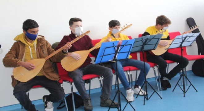 Aziziye Gençlik Merkezinde bağlama, keman ve gitar eğitimi alan minik çocuklar pandemi stresini müzik yaparak attı.
