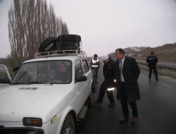 ERZURUM (İHA) - Narman İlçesi’nde Ulaştırma, Denizcilik ve Haberleşme Bakanlığı tarafından hazırlanan ve Resmi Gazete'de yayımlanan yönetmeliğe giren kış lastiği takma zorunluluğu nedeniyle ilçe girişinde İlçe Emniyet Amirliği ekiplerince uygulama yapıldı.