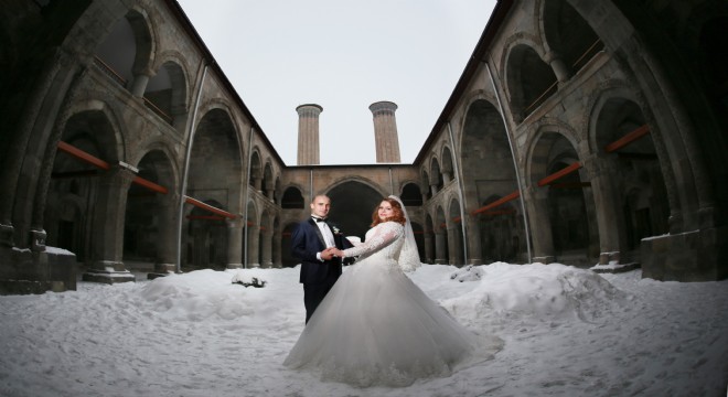 Erzurum’da bugün düzenlenen nikah töreni ile dünya evine giren özel harekat polisi Ahmet Kuşkapan ve Dilara Çelebi çifti nikah öncesi anayasa mesajı verdi. "Geleceğimizi kuruyoruz, Anayasa referandumuna evet diyoruz" diyen genç çift nikah öncesi tarihi mekanlarında düğün fotoğrafları çektirdi.