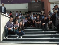 Basın açıklamasının ardından öğrenciler, Rektörlük Binası önündeki merdivenlerde temsili ders çalışma eylemi gerçekleştirdiler.