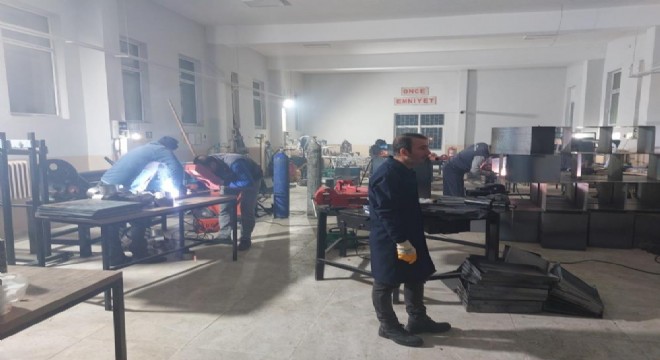 Aşkale ilçe Kaymakamlığı Milli Eğitim Müdürlüğü ve ilçe halkının ortaklaşa başlatmış oldukları afet zedeler için soba üretimi son hız devam ediyor.