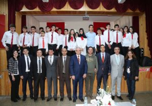 İstiklal Marşının Kabulünün 95. Yılını kutlama ve Milli Şair Mehmet Akif Ersoy'u Anma Programına katılan protokol öğrencileri ayakta alkışladı.