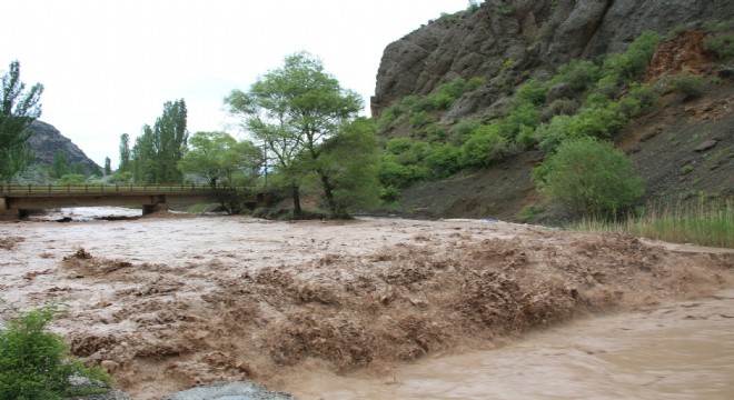 Erzurum’da etkili olan sağanak yağmur sonrası Oltu çayında sel meydana geldi.