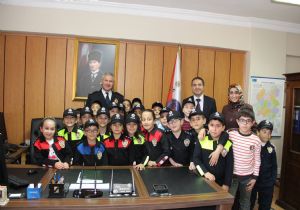 Oltu Atatürk İlkokulu 3 B sınıfı öğrencileri 10 Nisan Polis Haftası nedeni ile sınıf öğrencileri polislerin kullandığı kıyafetleri giyerek İlçe Emniyet Müdürü Cenk Bozkurt’u makamında ziyaret ettiler